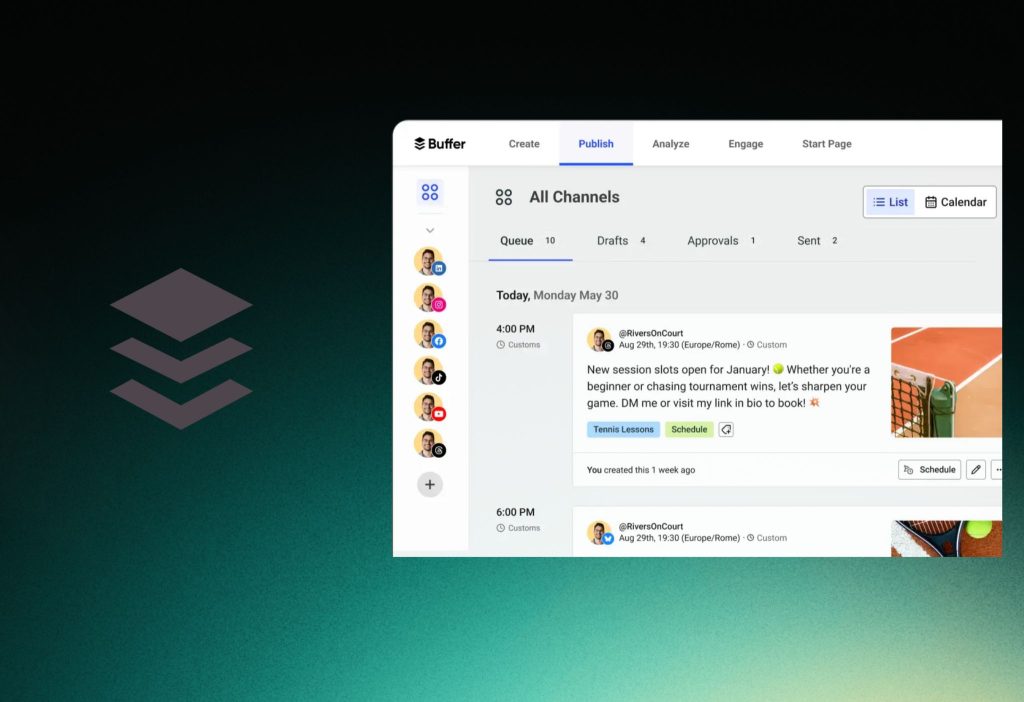 BufferSimple analytics for creators/SMBsFrom $5/month per channel